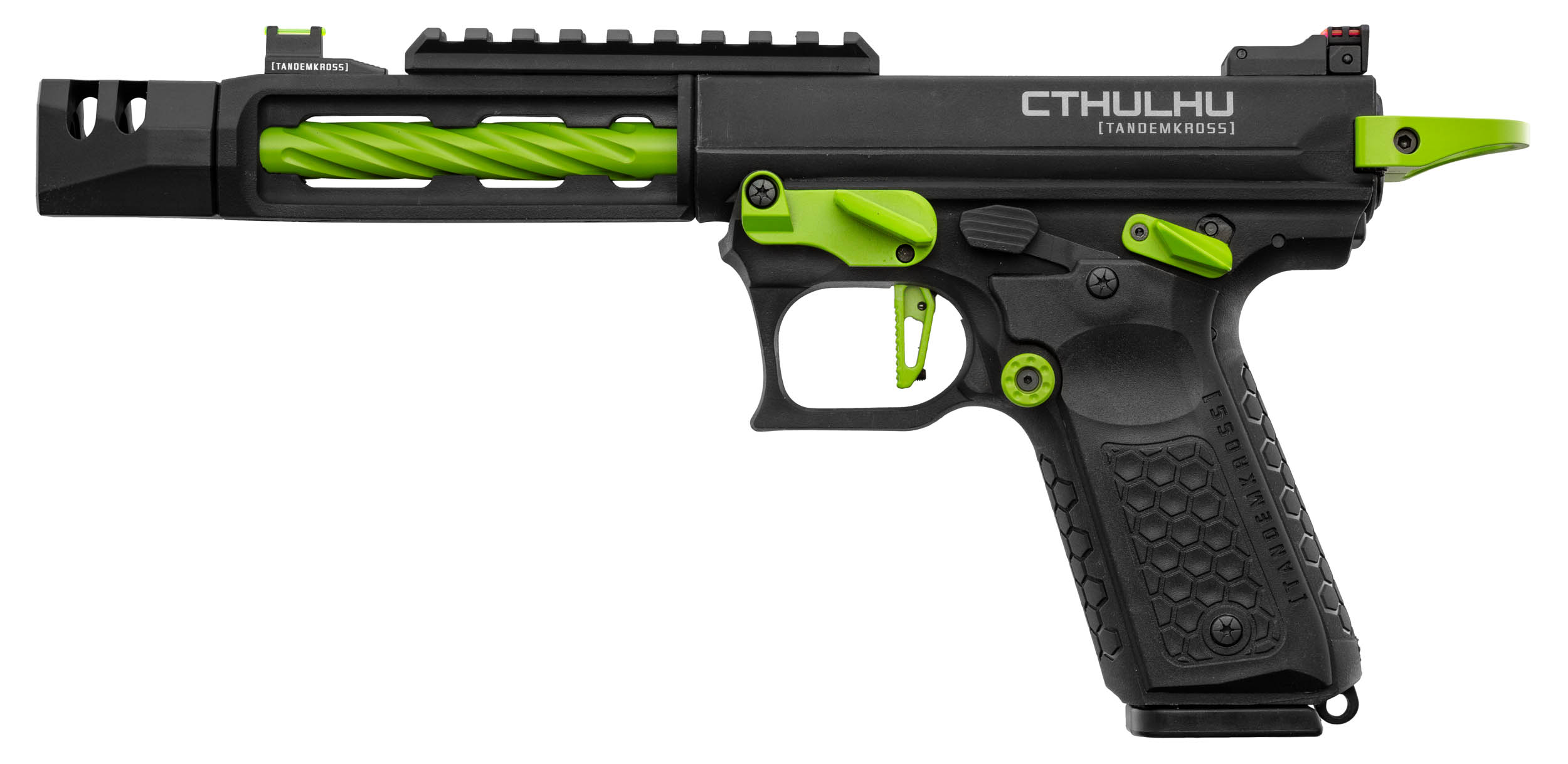 Découvrez le nouveau pistolet à gaz Tandemkross CTHULHU en noir/rouge. Fabriqué en polymère renforcé, ce GBB semi/full auto bénéficie d'un design entièrement sous licence. Cette réplique est doté d'un compensateur carré innovant "Game Changer Pro", d'un repose-pouce CNC, et d'une détente "squelette". De plus le Tandemkross Hivegrip assure une prise en main solide. Avec un anneau de chargement "Halo" et des viseurs à fibre optique "Eagle Eye", ce pistolet offre une précision inégalée. Le chargeur de 24 coups et le hop-up réglable renforce sa polyvalence.